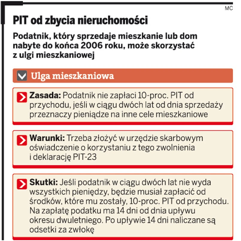 zwolnienia z opodatkowania, jeśli przychód z tego tytułu zostanie wydany na cele mieszkaniowe w ciągu dwóch lat od dnia sprzedaży.