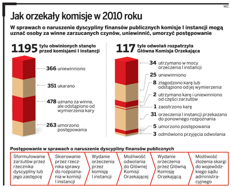 Co więcej, jeśli komisja I instancji uznała kierownika jednostki (bo to oni głównie odpowiadają za naruszenie dyscypliny) za winnego, a on odwołał się do Głównej Komisji Orzekającej (komisja II instancji), to miał duże szanse na uniewinnienie. Ze 117 wydanych rozstrzygnięć GKO uniewinniła 25 osób, a tylko raz zaostrzyła karę.