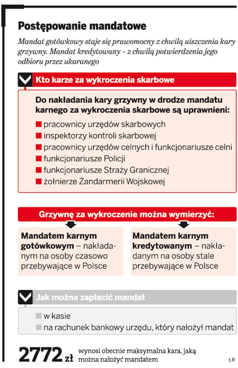 sądu jest zgoda z prawem. Sąd może uchylić mandat, jeśli nie doszło do popełnienia wykroczenia skarbowego (jest nim np. brak numeru ewidencyjnego kasy). Jednak jeśli mogło dojść do popełnienia przestępstwa skarbowego (np. niezapłacenia podatku), sąd zatrzyma wpłaconą z mandatu sumę do czasu zakończenia postępowania, w ramach którego sprawdzane jest czy do popełnienia przestępstwa doszło.