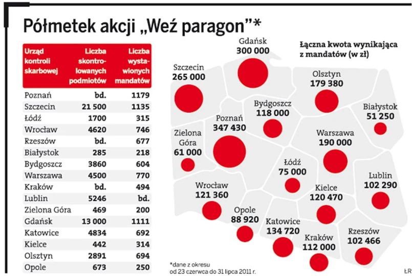 urzędnicy znaleźli błędy, za które wystawiali mandaty. Przykładowo w woj. zachodniopomorskim sprawdzili ok. 21,5 tys. przedsiębiorców. Nieprawidłowości stwierdzili u prawie 867 z nich. W woj. łódzkim na 1,7 tys. kontroli nieprawidłowości były u ponad 300 podatników. W woj. śląskim kontrolowane były 4834 punkty. W 445 wykryto błędy.
