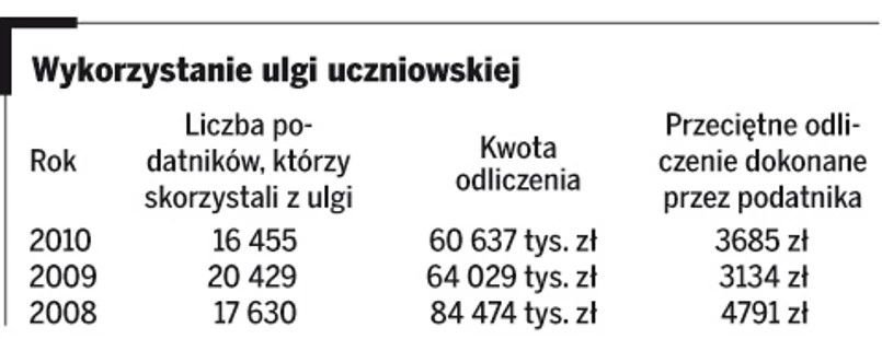 W rozliczeniu PIT za 2010 rok 16,5 tys. podatników skorzystało z ulgi uczniowskiej. Przeciętnie pomniejszyli swój podatek o 3685 zł.
