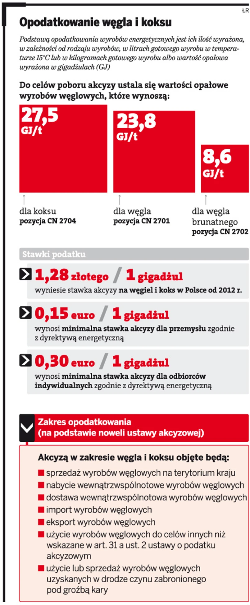 Regulacje wprowadzone przez Sejm w ustawie z 16 września 2011 r. o redukcji niektórych obowiązków obywateli i przedsiębiorców (tzw. druga ustawa deregulacyjna) w zakresie opodatkowania węgla i koksu nie przewidują przepisów przejściowych (ustawa czeka na podpis prezydenta).