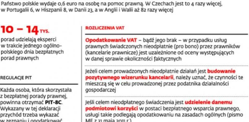 Obecnie obowiązujące przepisy podatkowe nie zachęcają specjalistów do udzielania darmowych porad prawnych osobom najuboższym.