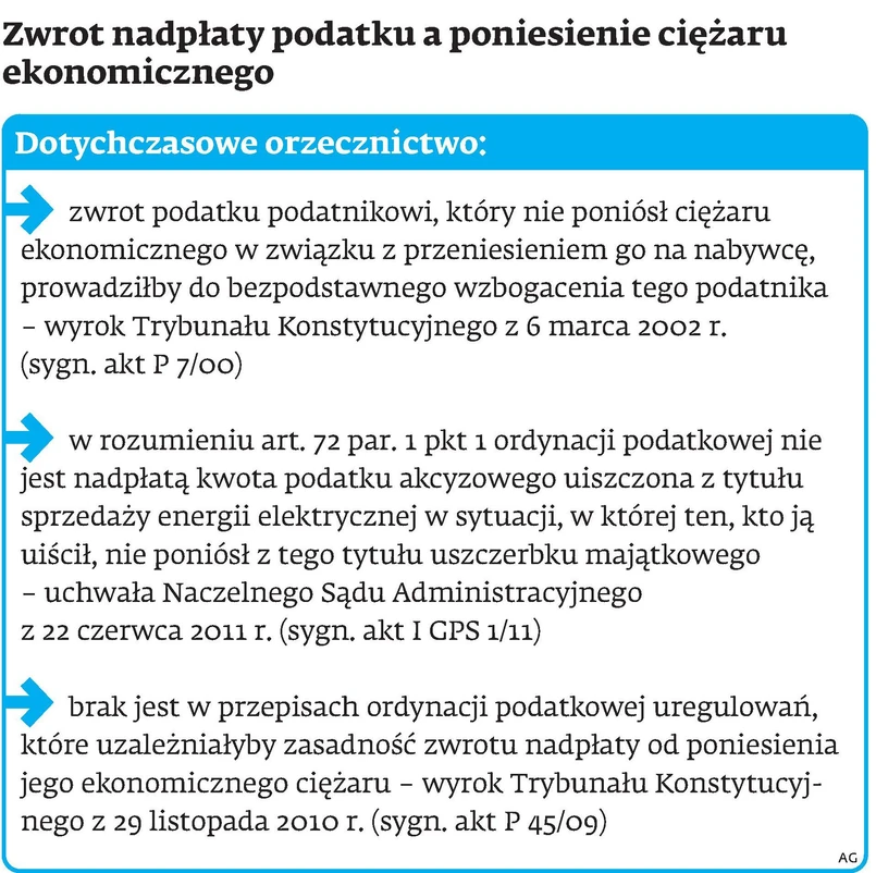 Już z samej konstrukcji podatków pośrednich wynika, że ich ciężar ekonomiczny ponosi w rzeczywistości nie podatnik, lecz nabywca towarów i usług. Trudno znaleźć istotną różnicę w tym zakresie pomiędzy podatkiem akcyzowym a VAT, który z samego założenia ma być neutralny dla jego podatników. Co więcej, w zasadzie w stosunku do wszystkich danin odprowadzanych przez przedsiębiorców można postawić tezę, że w sensie ekonomicznym ich ciężar jest przerzucany na odbiorców dóbr i usług. Przesłankę poniesienia ciężaru ekonomicznego podatku – jako warunek zwrotu jego nadpłaty – trudno byłoby nawet w sposób sensowny zapisać w prawie. Przy tak ogólnym sformułowaniu instytucja zwrotu nadpłaty podatku praktycznie straciłaby sens.