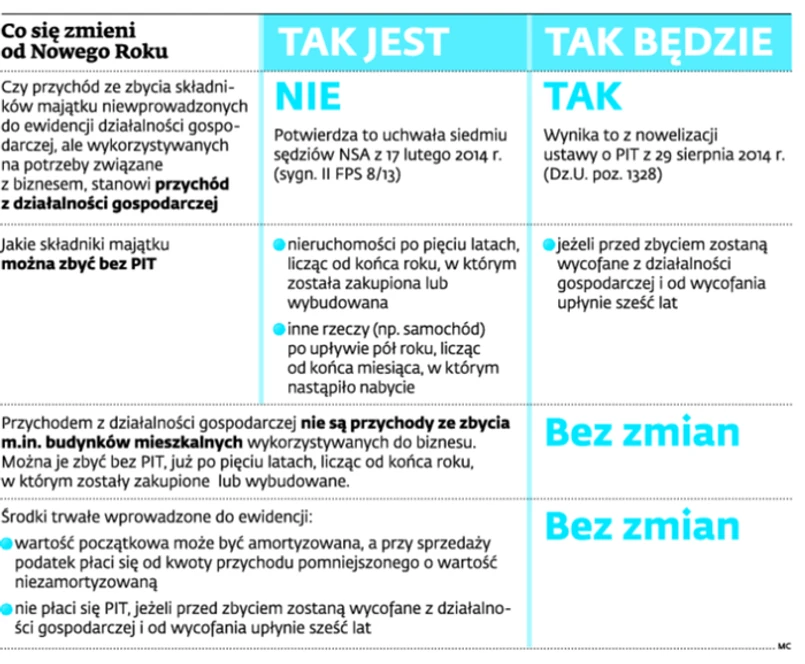Nowelizacja, która zacznie obowiązywać od 1 stycznia 2015 r. usankcjonuje więc dotychczasowe podejście fiskusa. Stracą na niej przedsiębiorcy, którzy chcieliby sprzedać firmowy majątek bez podatku.
