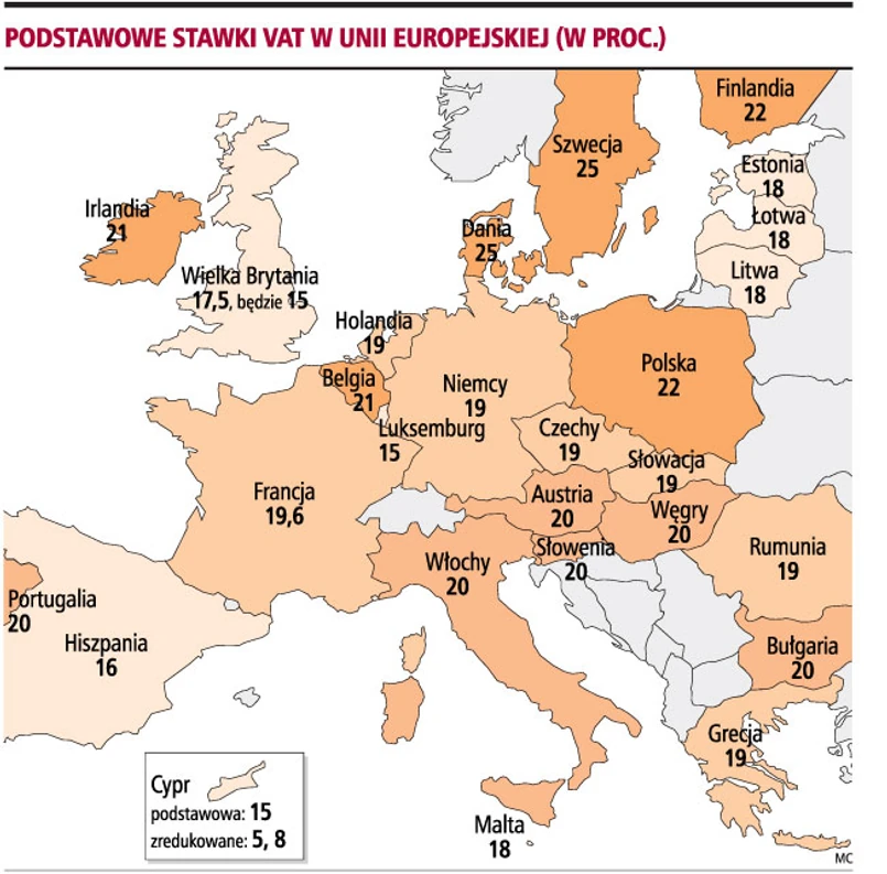 Według Michała Galejczuka, menedżera w Accreo Taxand, wydaje się, że takiego zdania są rządy chociażby Wielkiej Brytanii czy Holandii, gdzie odpowiednio planuje się obniżenie stawek VAT z 17,5 do 15 proc., zaś w Holandii rząd odstąpił od planowanej wcześniej podwyżki stawek VAT z uwagi na panującą recesję.