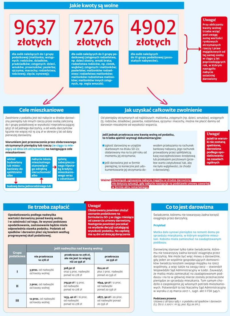 Od pieniędzy otrzymanych od najbliższych: małżonka, zstępnych (np. dzieci, wnuków), wstępnych (tj. rodziców, dziadków), pasierba, rodzeństwa, ojczyma i macochy, można nie płacić daniny od darowizn niezależnie od wysokości wsparcia.