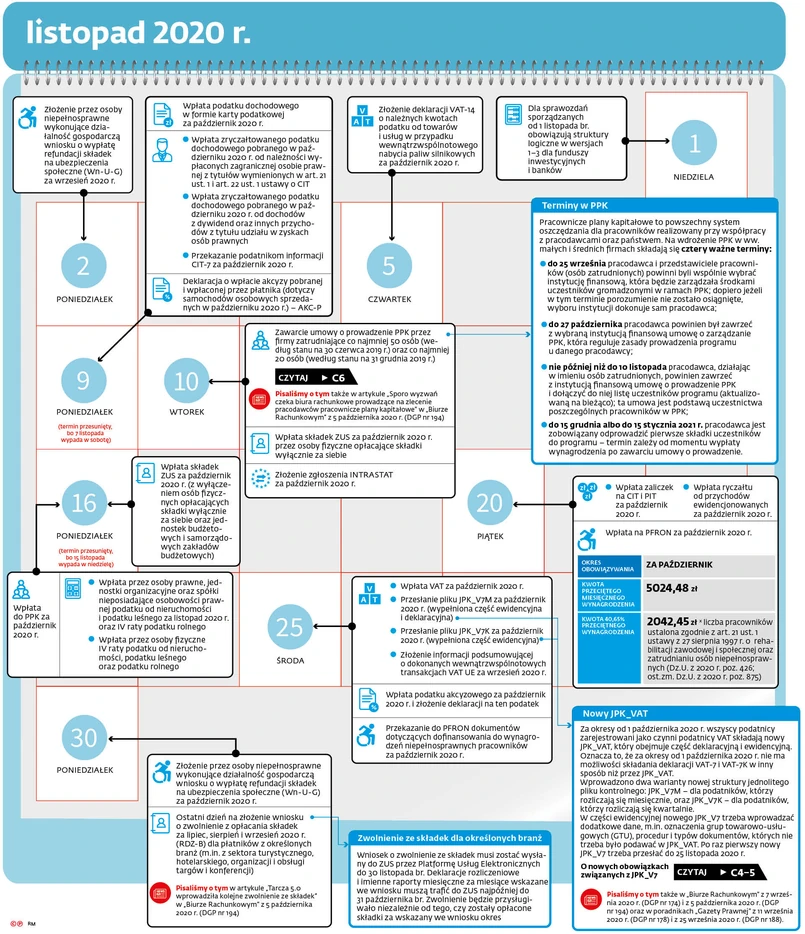 Terminy ważne dla biura rachunkowego w listopadzie i grudniu 2020.